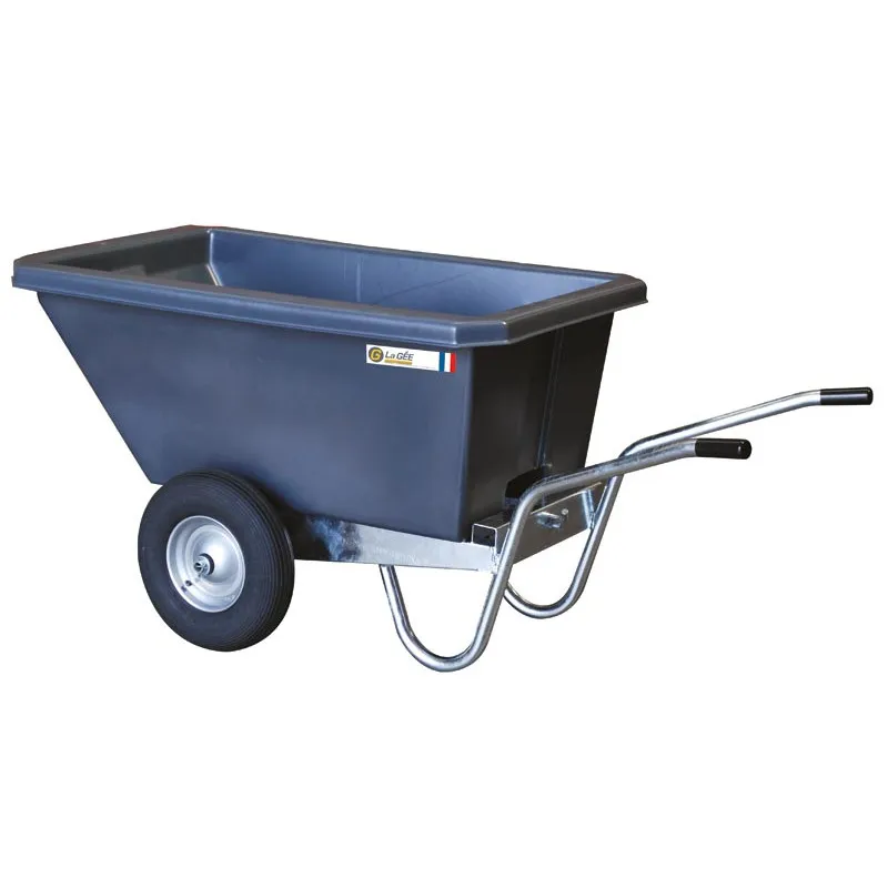 These barrows are designed with a galvanised frame and a tipping polyethylene resin tub. Fitted with 400 x 8 wheels - inflatable 4 ply on greased bearings with shoulder of 80 mm, metallic rims (except 200 l model). Well balanced frame spreads the load and provides optimum comfort.