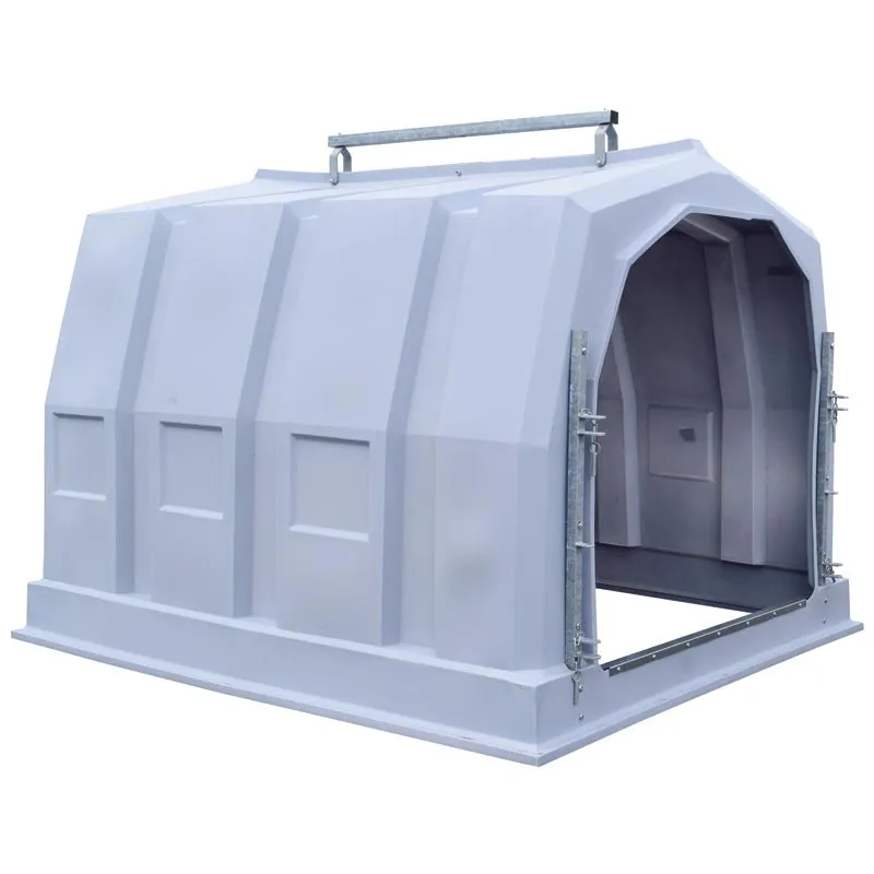 One-piece rotomolded hutch in polyethylene, 7.2m², more flexible and less fragile than fiberglass.