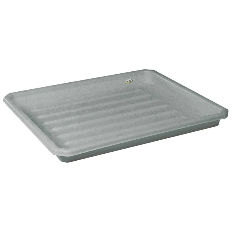 Small and large boot dips have a ribbed bottom which retains dirt. The large model prevents people from bypassing the disinfectant.