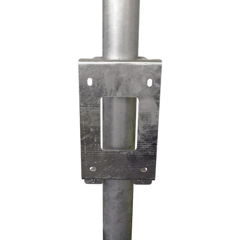These mounting brackets are used to fasten the drinker and its metallic protection on round Ø 76 or 102 mm posts using its two 1/2 toothed flanged delivered as standard. It is designed with technical reinforcements and screw holes.